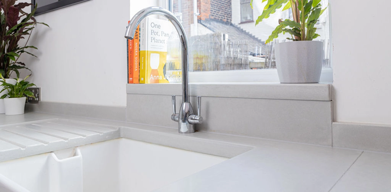 To tie the design together, we also created bespoke concrete splashbacks, which added depth and texture to the walls without overwhelming the space. Their clean, minimalist look complemented the natural materials and neutral tones used throughout the kitchen.